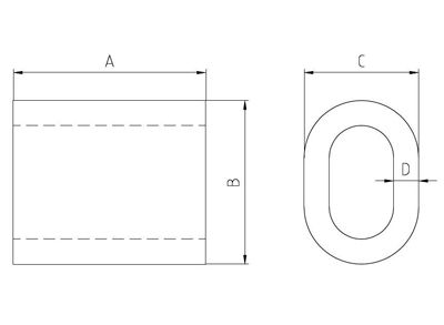 ![]() | ● For turnback wire rope splicing ● Special processed carbon steel ● Designed for lower temperature toughness ● Resists cracking when swaged (equals or exceeds stainless steel sleeves) ● Better swageability ● Stamp for identification after swaging |